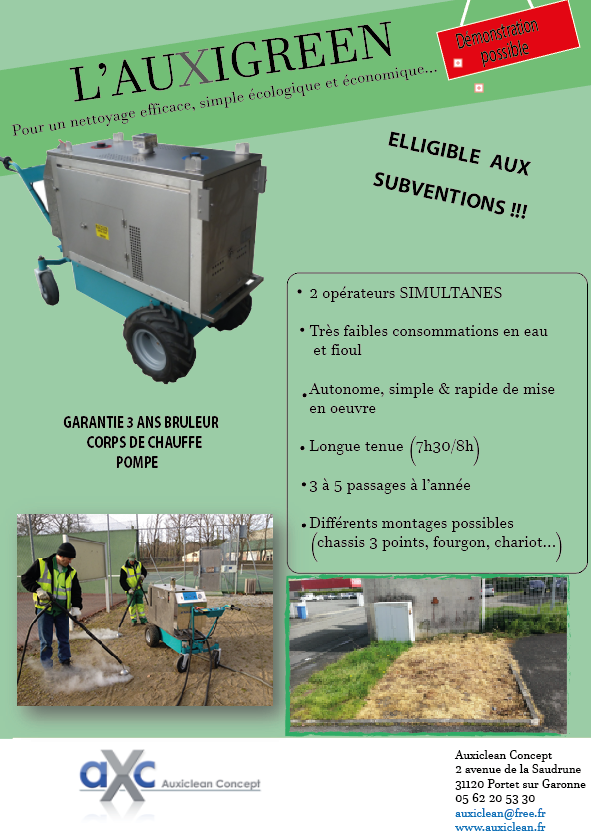 Température vapeur : 102° C à la sortie de la buse de désherbage.